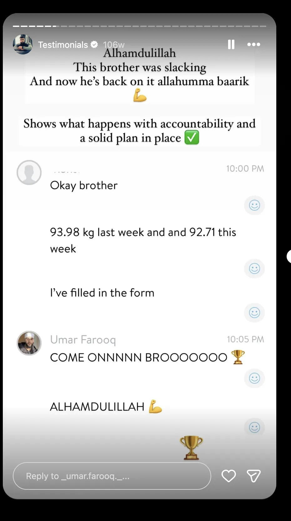 Coach Umar has built his work around one mission: helping Muslim men become the strongest version of themselves — in body and in character. He combines Islamic values with proven fitness principles to create a system that actually fits the life of a practicing Muslim. He doesn't just train bodies. He builds men.